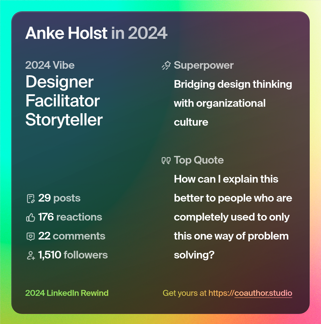 Ich selbst weiß sehr genau, wo meine Stärken liegen – allerdings war ich vier Monate lang in einer Rolle, wo ich mich ganz und gar nicht einbringen konnte. Weil ich keine Gestaltungsfreiheit hatte. Diese Gestaltungsfreiheit habe ich mir dann geschaffen und einen Design Sprint angezettelt. Das waren die letzten zwei Monate des Jahres. Bis hin zur letzten Woche, wo ich noch gekämpft habe, die Arbeit zu dokumentieren.